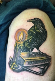 乌鸦纹身图 男生大腿上蜡烛和乌鸦纹身图片
