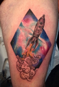 大腿纹身男 男生大腿上菱形和火箭纹身图片