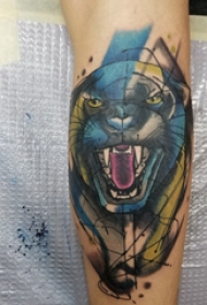 欧美小腿纹身 男生小腿上彩色的豹子纹身图片