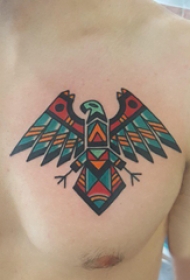 纹身胸部男 男生胸部彩色的几何老鹰纹身图片