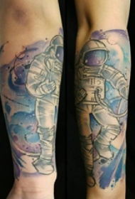 手臂纹身图片 男生手臂上彩色的宇航员纹身图片