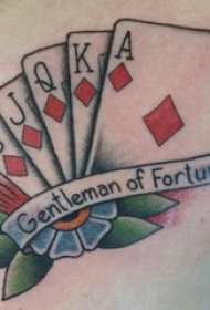 扑克牌纹身 男生大腿上花朵和扑克牌纹身图片