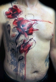 玫瑰纹身图 男生胸部彩色的玫瑰纹身图片