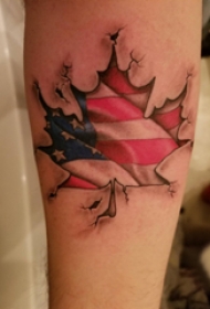 植物纹身 男生手臂上国旗和枫叶纹身图片