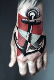 手背纹身 男生手背上彩色的船锚纹身图片