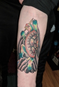 龟纹身 男生手臂上匕首和乌龟纹身图片