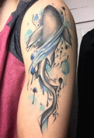 双大臂纹身 男生大臂上彩色的鲨鱼纹身图片