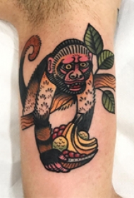 大臂纹身图 男生大臂上植物和猴子纹身图片