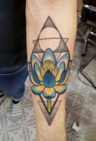 手臂纹身素材 男生手臂上三角形和花朵纹身图片