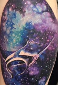 原宿星空纹身 男生大臂上飞船和星空纹身图片