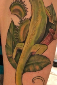 蜥蜴纹身图案 男生大臂上植物和蜥蜴纹身图片