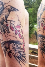 大臂纹身图 男生大臂上植物和乌鸦纹身图片
