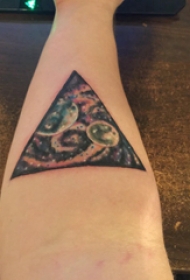 三角形纹身图 男生手臂上三角形的星空纹身图片