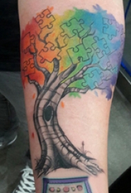 欧美拼图纹身 男生手臂上创意的拼图树纹身图片