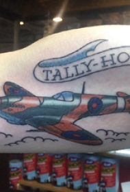 大臂纹身图 男生大臂上彩色的战斗机纹身图片