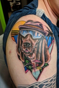 小狗纹身图案 男生大臂上彩色的小狗纹身图片