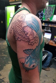 小动物纹身 男生手臂上彩色的鲤鱼纹身图片