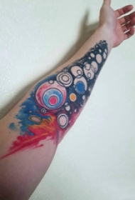 手臂纹身素材 男生手臂上圆形的星球纹身图片