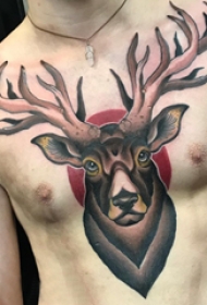 纹身胸部男 男生胸部彩色的鹿纹身图片