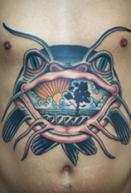 腹部纹身 男生腹部风景和鲶鱼纹身图片