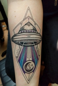 飞碟纹身图案 男生手臂上月亮和飞碟纹身图片