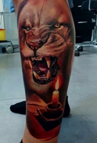 狮子王纹身 男生小腿上彩色的狮子纹身图片