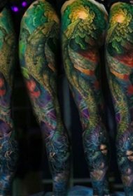 彩色泼墨纹身 男生小腿上彩色的泼墨纹身图片