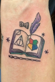 纹身书籍 男生手臂上羽毛笔和书籍纹身图片