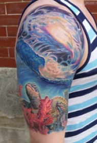 海洋纹身素材 男生大臂上彩色的海龟纹身图片