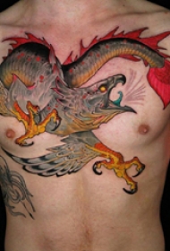 纹身胸部男 男生胸部勇猛的老鹰纹身图片
