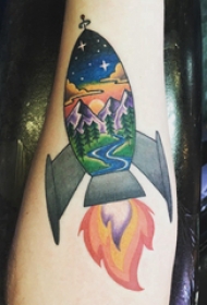 手臂纹身素材 女生手臂上彩色星球纹身图片