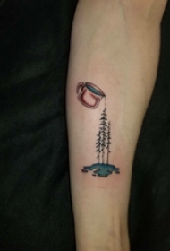 手臂纹身图片 男生手臂上杯子和植物纹身图片