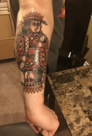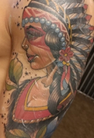 人物肖像纹身 男生手臂上彩色的印第安人纹身图片