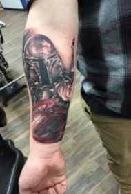 武士头盔纹身 男生手臂上彩色的头盔纹身图片