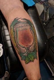 欧美小腿纹身 男生小腿上植物和杯子纹身图片