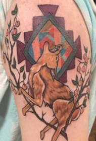 大臂纹身图 男生大臂上植物和狼纹身图片