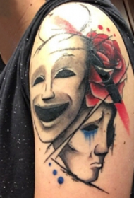双大臂纹身 男生大臂上玫瑰和面具纹身图片