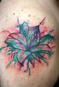 百合花纹身图案 男生大臂上彩色的百合花纹身图片