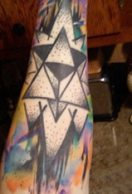 纹身六芒星图案 男生手臂上彩色的六芒星纹身图片