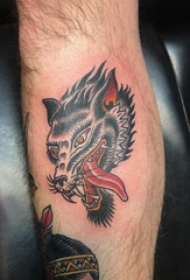 滴血狼头纹身 男生小腿上彩色的狼头纹身图片