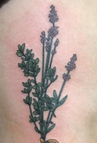 侧腰纹身男 男生侧腰上彩色的植物纹身图片