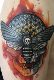 骷髅纹身 男生大臂上飞蛾和骷髅纹身图片
