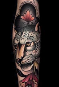 大臂纹身图 男生大臂上彩色的豹子纹身图片