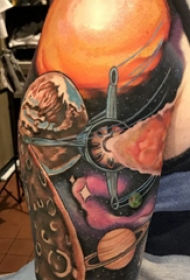 大臂纹身图 男生大臂上彩色的宇宙纹身图片