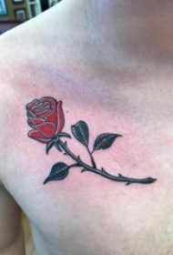 花朵纹身 男生胸部彩色的玫瑰纹身图片