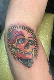 彩绘纹身 男生手臂上彩色的骷髅纹身图片