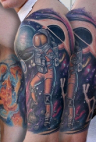 大臂纹身图 男生大臂上宇宙和宇航员纹身图片