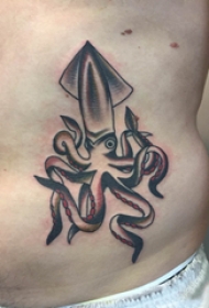 腹部纹身 男生腹部彩色的鱿鱼纹身图片