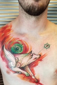 九尾狐狸纹身 男生胸部彩色的狐狸纹身图片