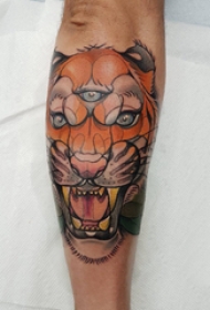 手臂纹身素材 男生手臂上彩色的老虎纹身图片